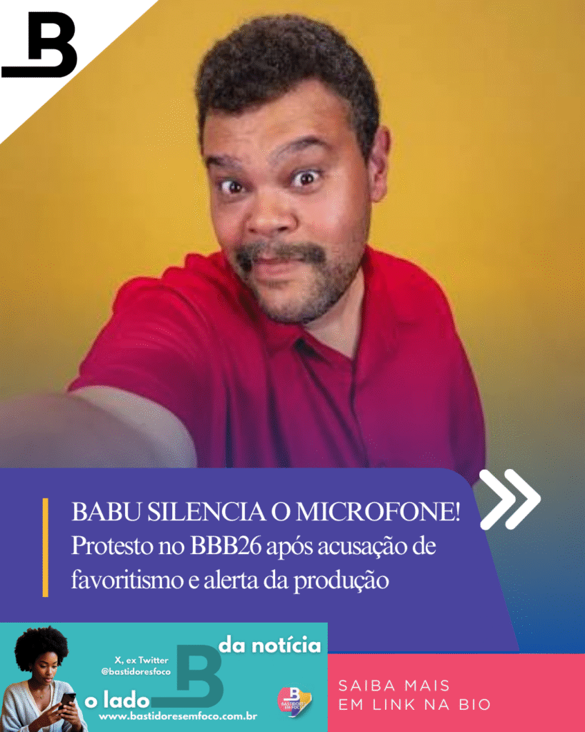 O ator Babu Santana protagonizou um momento de tensão na tarde deste domingo (08) ao acusar Jonas de favorecer aliados durante uma dinâmica na casa do BBB26. Indignado com a situação, Babu retirou o microfone e anunciou que ficaria 24 horas sem falar como forma de protesto. A atitude do ator gerou grande repercussão entre os internautas.
