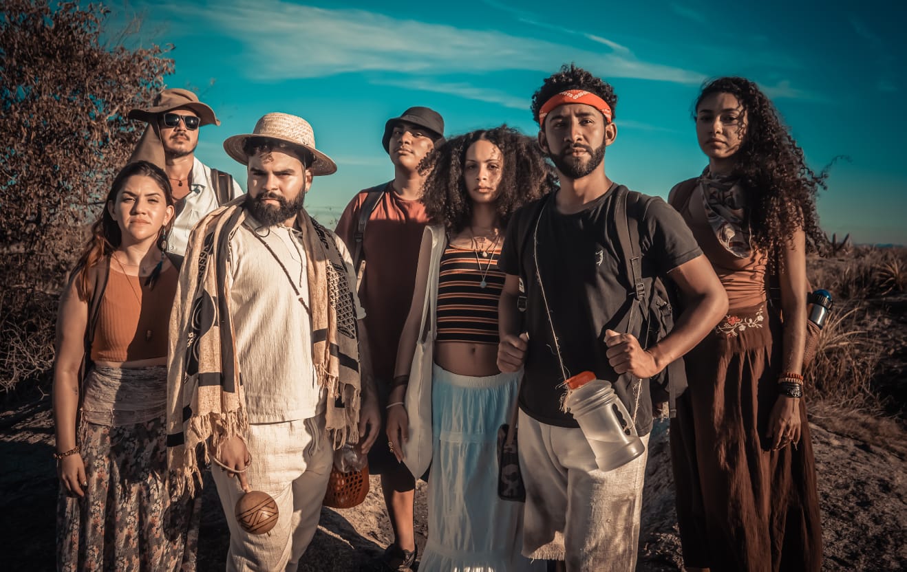 Com 70 minutos de duração, “Nova Terra” é um longa-metragem de ficção que acompanha a trajetória de um grupo de sete jovens artistas de teatro, personagens marcados por histórias pessoais atravessadas por conflitos, perdas e processos de reconstrução. Em busca de transformação, eles decidem se isolar no sertão para montar uma peça teatral, vivendo uma espécie de retiro artístico em meio à paisagem árida e simbólica do Semiárido cearense.