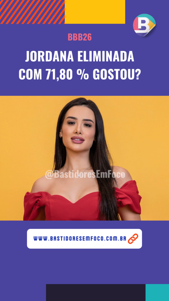 Home / Reality Show / Jordana eliminada com 71,80% dos votos do BBB26