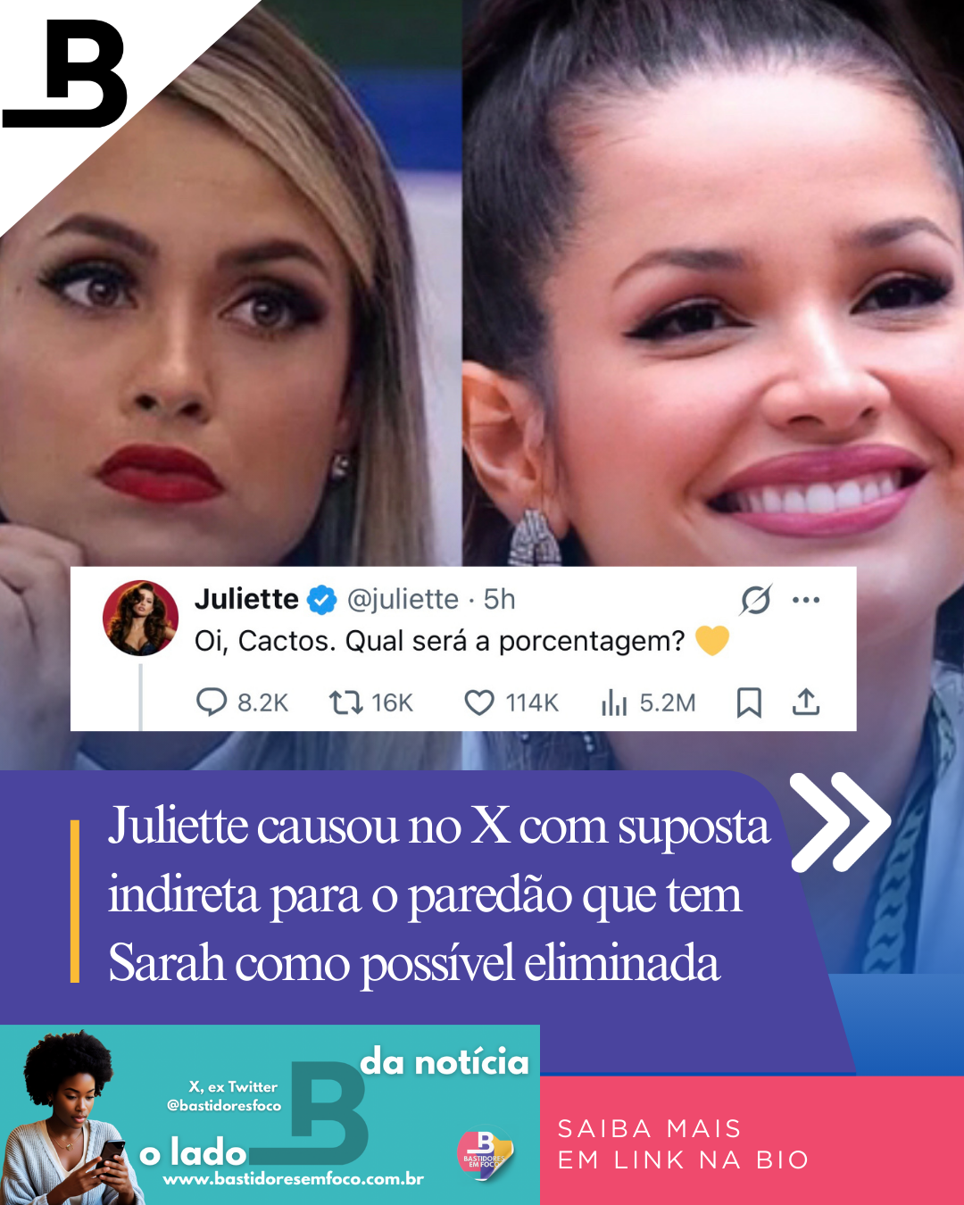 Juliette causou no X com suposta indireta para o paredão que tem Sarah como possível eliminada