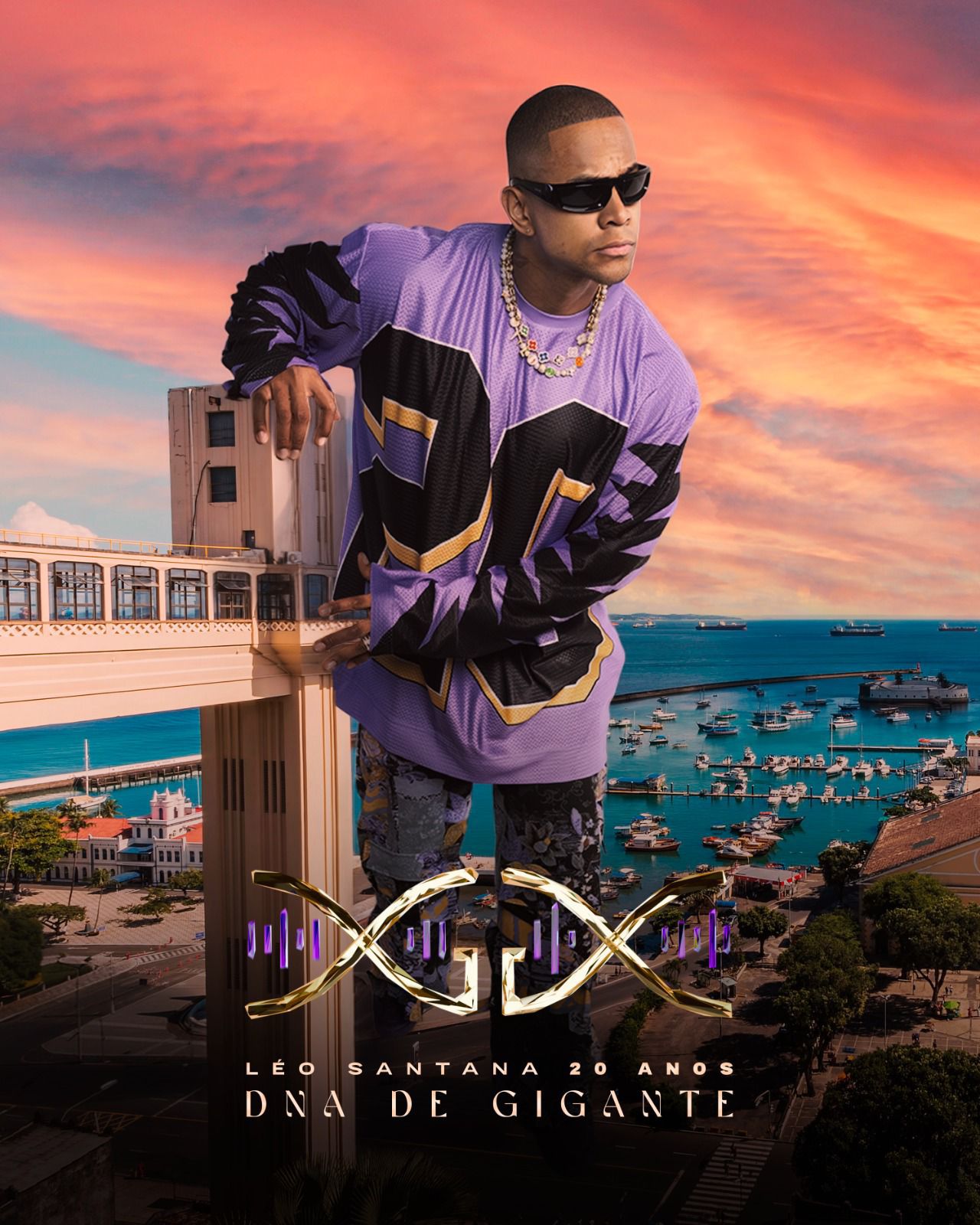 O GG Léo Santana celebra, em 2025, duas décadas de uma trajetória marcada por luta, superação e sucesso. Para comemorar em grande estilo os 20 anos de carreira, o gigante da Bahia vai presentear os fãs e sua cidade natal com um show gratuito, durante o qual será gravado o audiovisual “Léo Santana – DNA de Gigante”.