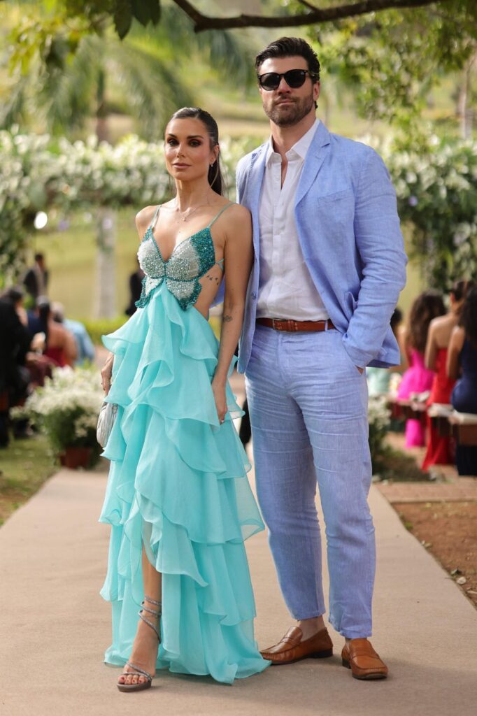 Renato Albani também impressionou com seu traje, desenvolvido pela Mr.suits em parceria com o estilista Caio Duarte. Para o altar, o humorista usou um terno verde oliva sob medida, em perfeita sintonia com o cenário campestre.